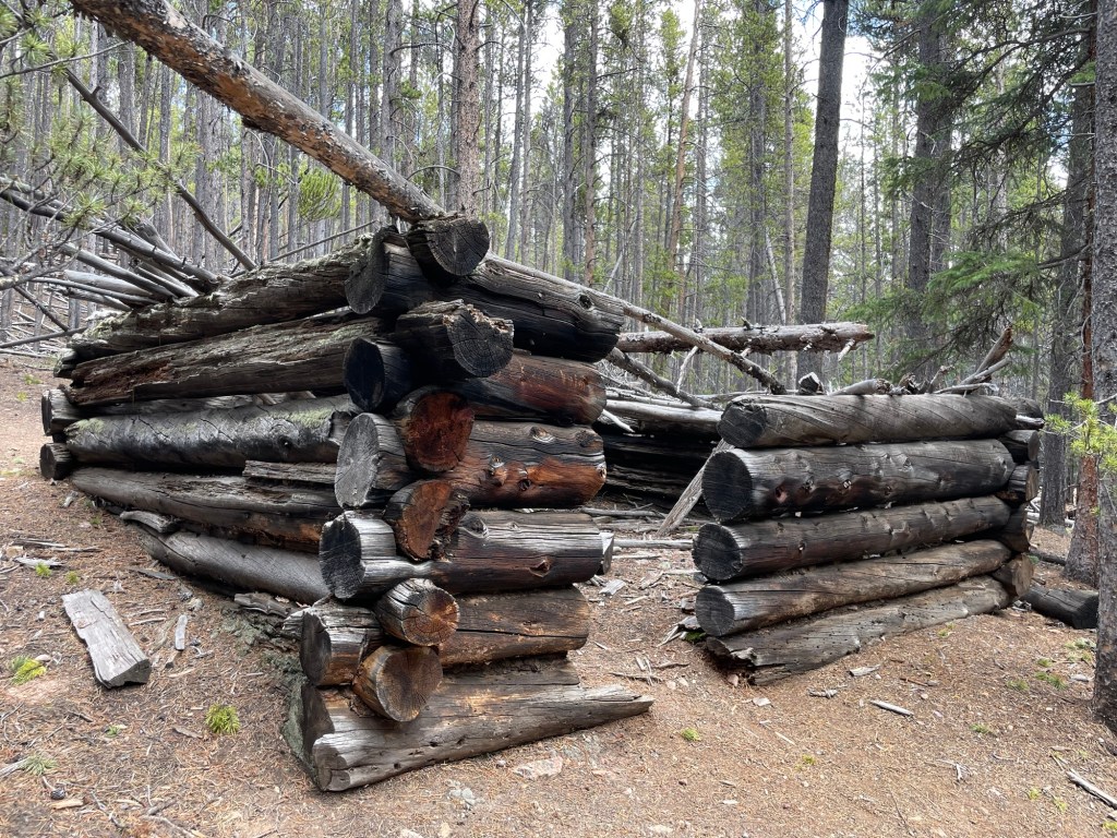We opted for the Burning Bear trail, a rocky 4 miles out and back amongst lodgepole pines to a ridge line, above a pretty alpine fen (peat bog). You’re never too far from mining and homesteading history in these mountains, as the remains of this log cabin along the trail reminded us. We’re lucky the dry mountain air has kept so many of these artifacts from disappearing altogether.