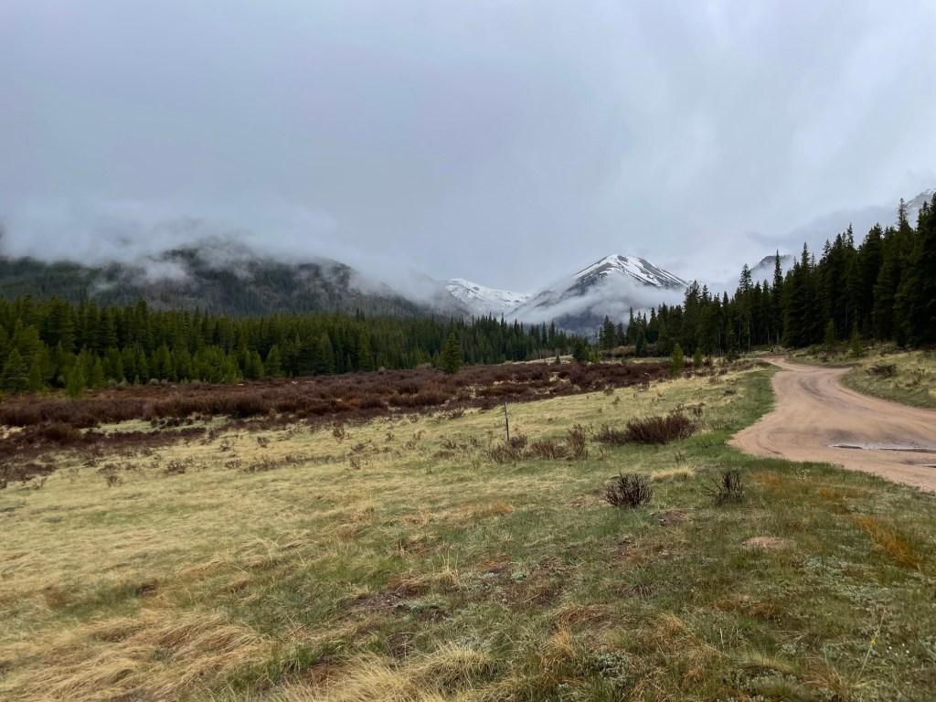 Soon after returning to camp, the rain started. Then the rain turned into a downpour. We didn’t worry about it. We just piled into the Beangle to read, rest, and ride it out. Suddenly thunder was cracking overhead and hail was pounding the Beangle’s roof. After a few minutes, in true cartoon-style, we looked outside and saw Jess’ tent had collapsed under an inch of hail. We burst out laughing and I noted that we’d moved fully into Type 2 Fun.