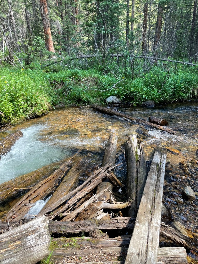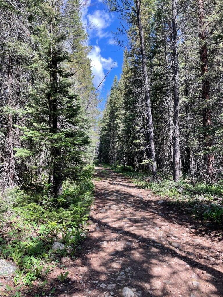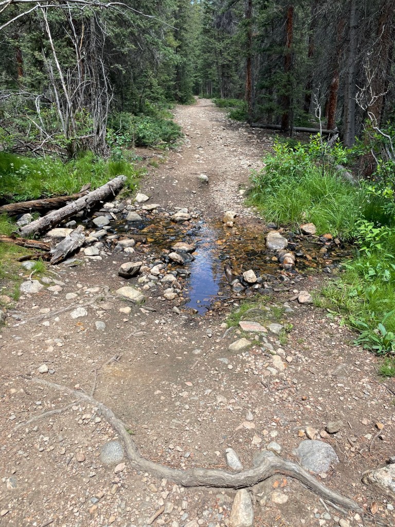 Early Saturday morning, we followed the West Jefferson trail, crossed the long distance Colorado Trail, and greeted a few of its thru hikers. Since it’s halfway along the 12 miles between the Kenosha and Georgia high passes, we could only hope they made it to their next stop and had their tents set up before the unstable looking afternoon skies opened upon them.