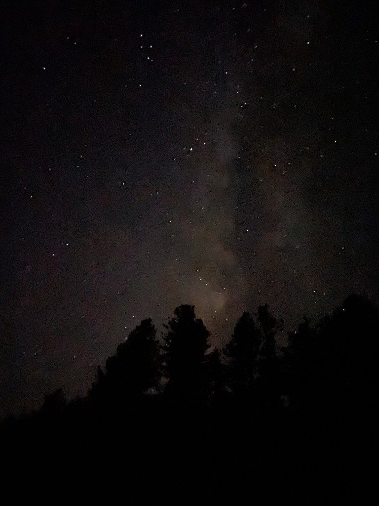 Our evenings were pretty quiet the entire long weekend. A simple dinner, pretty sunset, crackling fire, and retire early. Repeat. I woke up each evening around midnight, hello tiny bladder, and stargazed a bit since it was a new moon weekend. I even saw a bit of a meteor shower. We’d intended to go to a stargazing event nearby, but never got there. Sometimes it just makes more sense to relax and get some extra sleep. Each morning Jeff would make us coffee/tea and then sit very very quietly, watching the birds move around us. Hairy woodpeckers, hummingbirds, western bluebirds, a variety of hawks. His Merlin app was getting a workout.