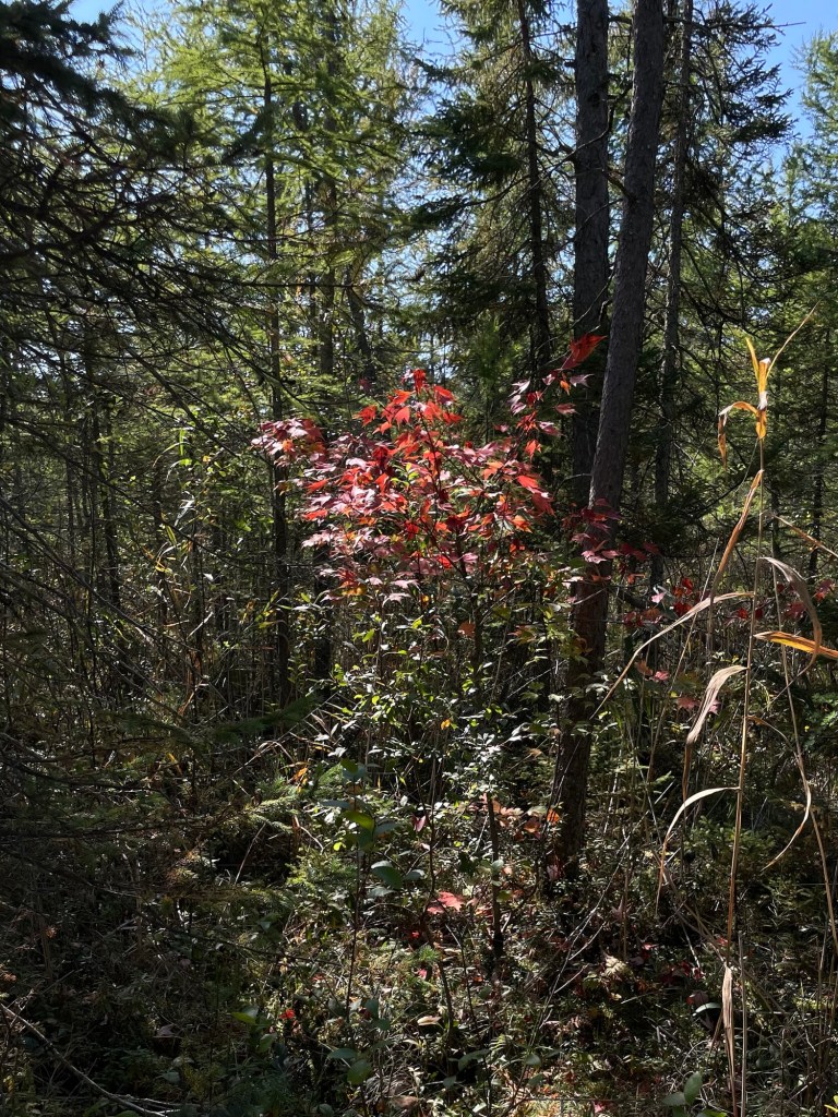 It’s been nice to see such a variety of trees in the Minnesotan forests. Nothing against high altitude forests, of course. I’m still a sucker for Ponderosa and Lodgepole Pines. But we’d kind of forgotten how pleasant it is to see punches of red and yellow and orange popping out amidst the conifers in the fall. I mean, just look at that proud little red maple showing off in the bog.