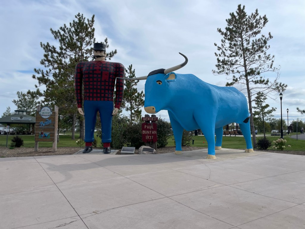 The next day was significantly cooler, so we rode our bikes around Lake Bemidji, visited the Paul Bunyan and Babe the Big Blue Ox statues (a massive highlight for me tbh), and had lunch in town. Bemidji is a nice little town. I hear the winters are pretty intense, but we can vouch for an autumn visit. Folks were friendly, the town had all the necessary conveniences, and the rounded upper Midwest accent reminded us of Jeff’s years in Michigan’s Upper Peninsula.