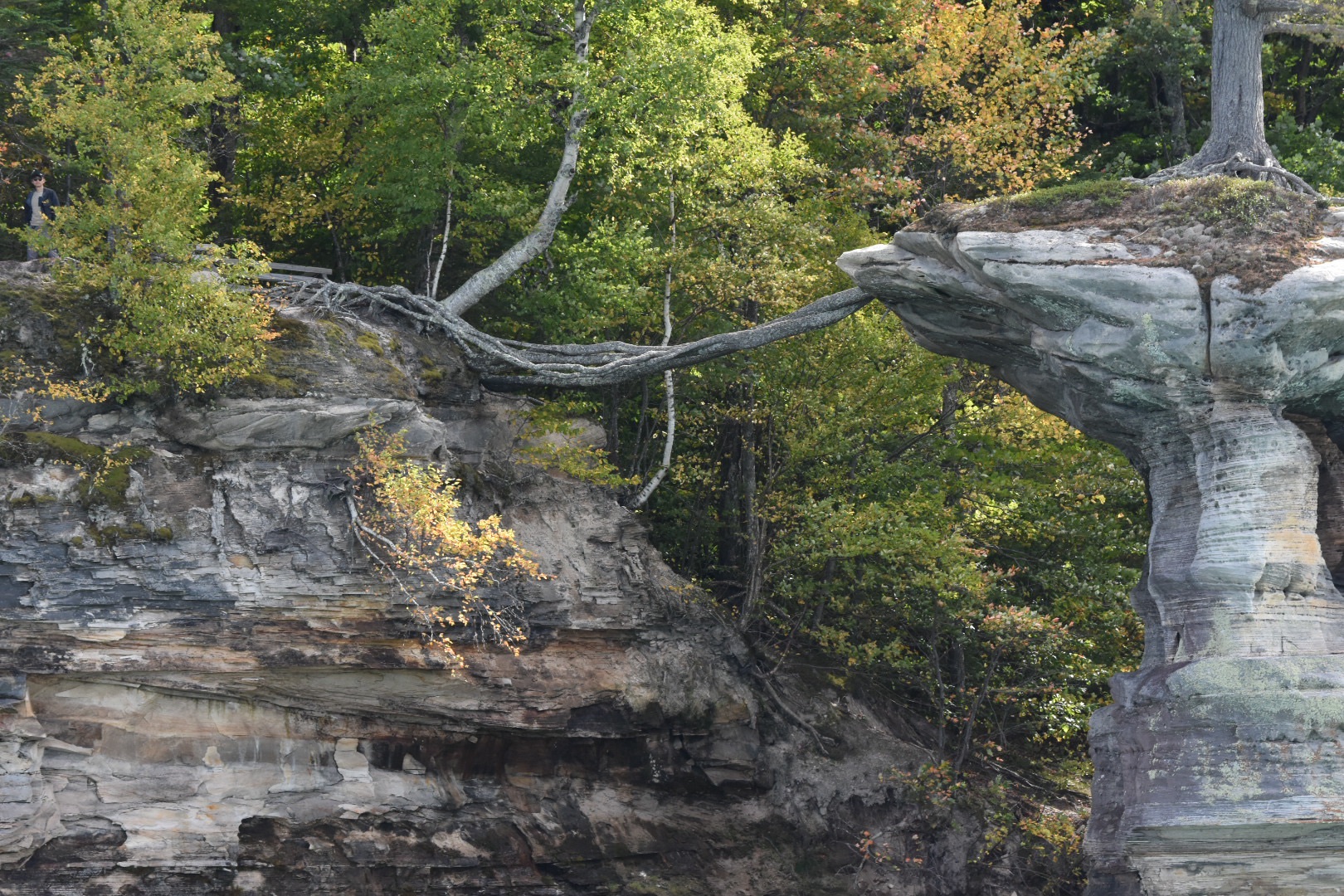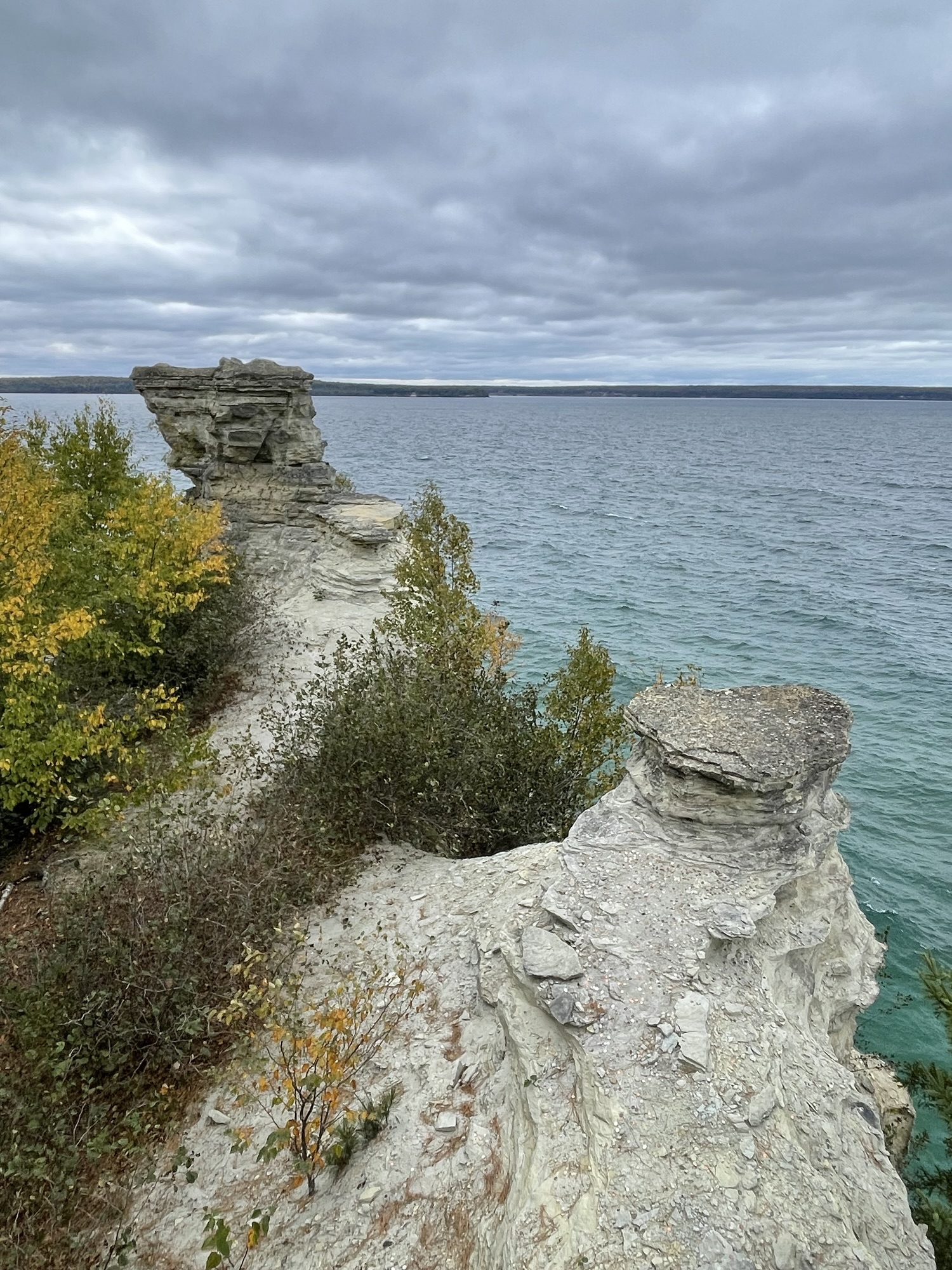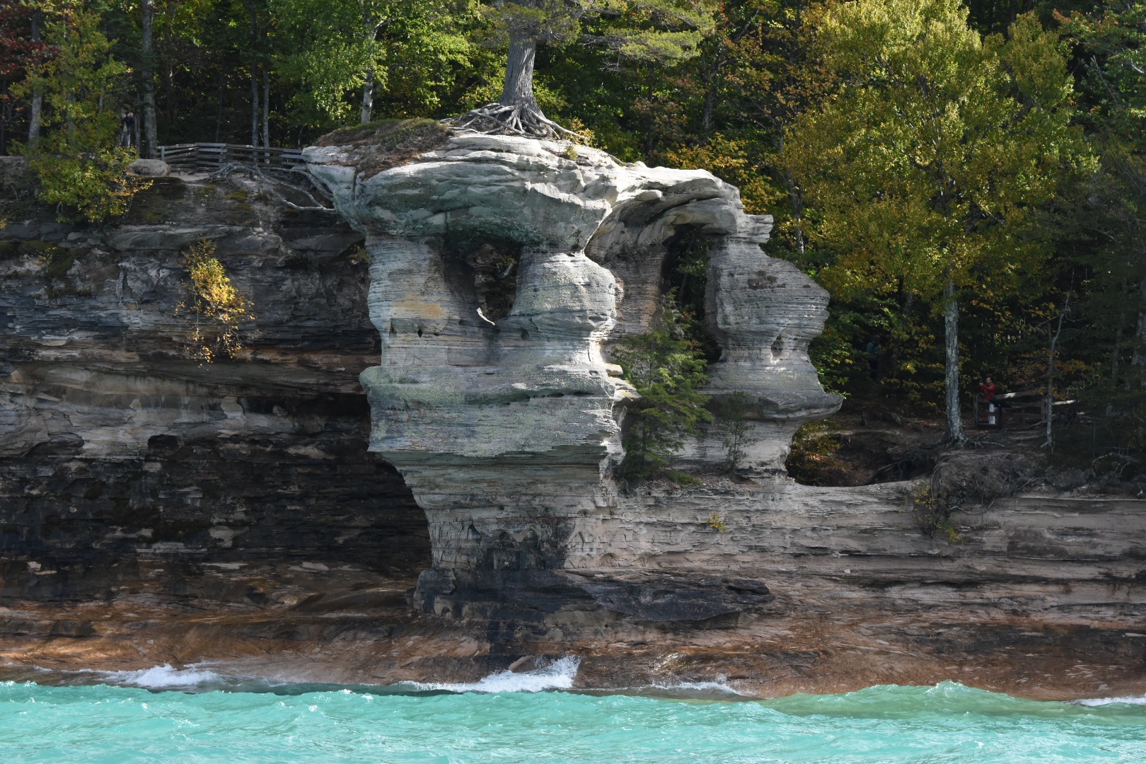 When we were here 20 years ago (‘Back in my day…’), the Castle formation had both its tall turrets, but erosion is a sandstone fact of life, and a rockfall back in 2006 took one of the tall turrets with it in a race to Lake Superior. The formation must be fairly unstable because there are signs ev.er.y.where stating, point blank, that you are “highly unlikely to survive a fall” from this cliff. You just know people are still doing it though. Stupid is gonna stupid.