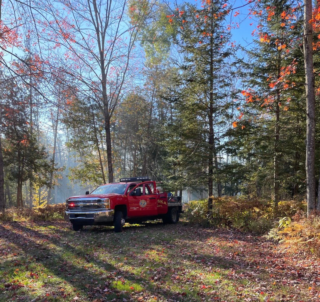Right before we headed out, a neighbor called to warn us not to worry but we might hear some sirens. We heard some sirens. We saw some lights. Two volunteer departments arrived. Don’t say they don’t know how to have a good time Up North. Thankfully it wasn’t a big deal and the brush fire was knocked down and under control again even before the first truck arrived, but always better to be safe than sorry.