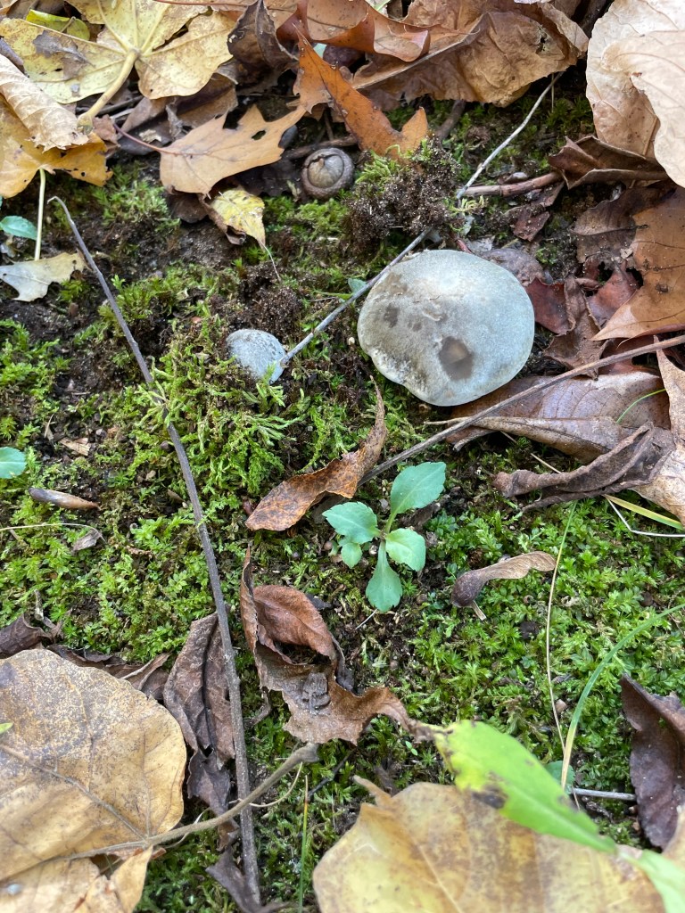 We found some impressive contestants for Death or Dine, but this puff ball, with its skull-like cap, feels appropriate for this time of year. A quick internet search into its edible-ness doesn’t lean toward safety. It’s got discolorations, blemishes, and rough patches. All warning signs. Don’t say I didn’t warn you.