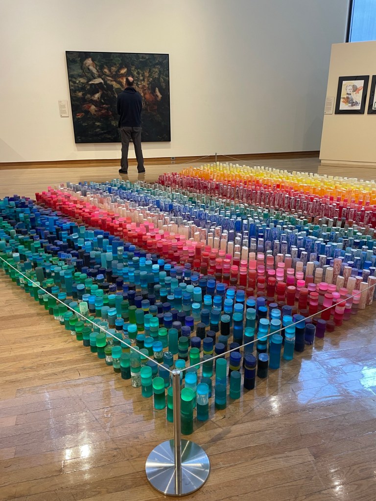 Wandering the art museum was a good way to warm up and feed our minds after breakfast. I stood in front of the above piece for quite a while, enjoying the way it played with my optics, the lines seeming to move a bit and the orange spot seeing to grower brighter and dimmer the longer I looked at it.