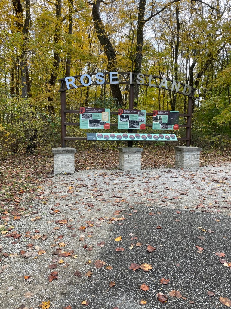 Charlestown State Park is a fairly new state park (1996) for Indiana, on the site of an old ammunition factory, but its hidden gem is an old picnic ‘island’ (peninsula) from the 1800s that had another Resort-style rendition and a name change, Rose Island, in the early 1900s. After a massive flood of the Ohio River in 1937, the park was abandoned and all but forgotten until it reopened to the public in 2011 when a bridge was installed. Nature has reclaimed nearly every inch of the once glamorous summer resort, but a few bits of its history still peak out here and there.