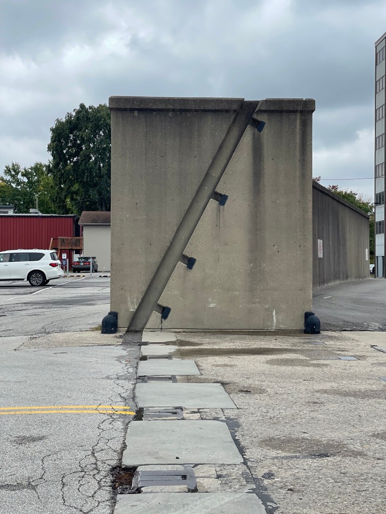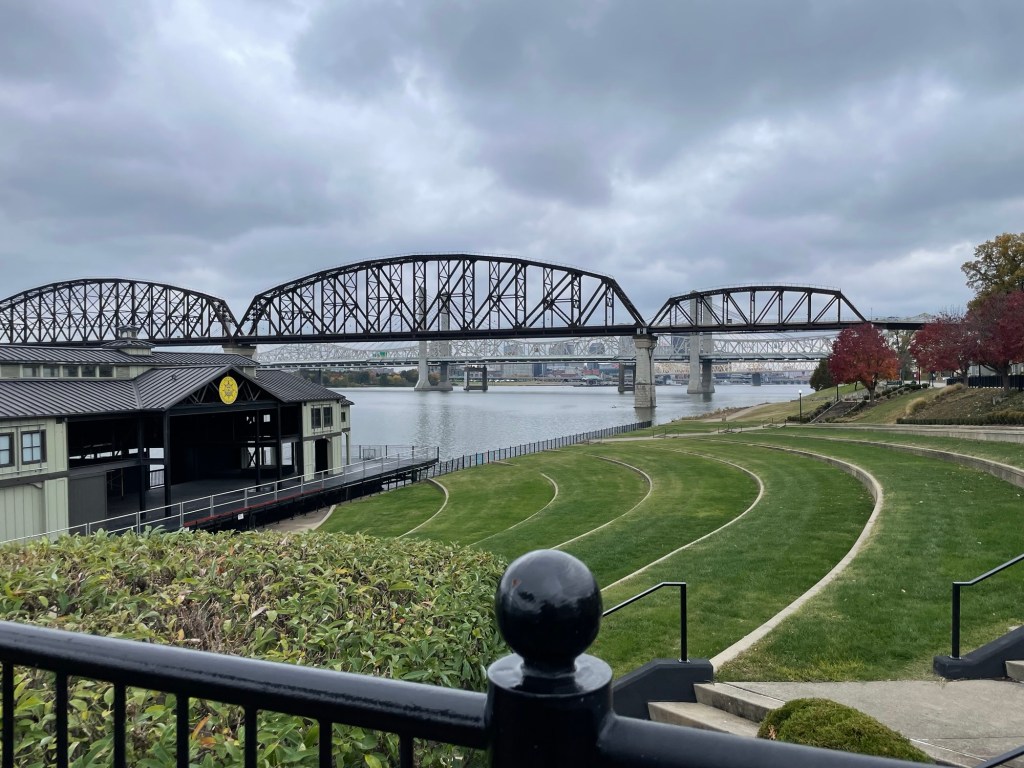 After breakfast in Jeffersonville with Shannon and Chris, we all took a stroll down to the Ohio River. The area clearly learned a painful lesson in 1937. Flood walls like this are everywhere throughout the region.