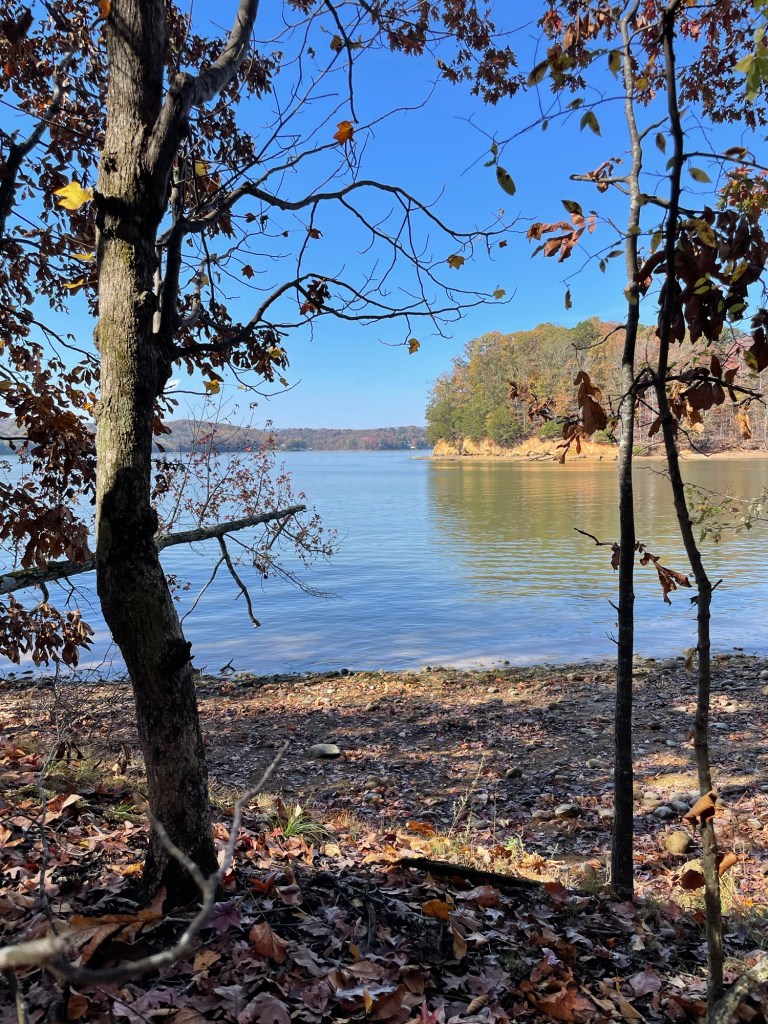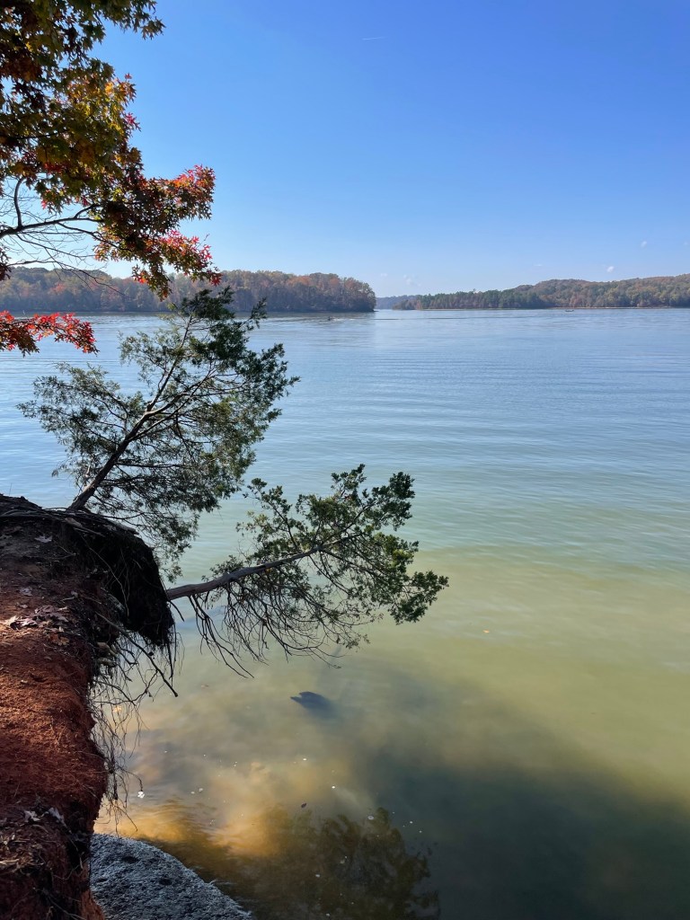 The park’s shoreline is getting undercut and eroding away in several spots, leaving trees like these reaching out above the water. For now.