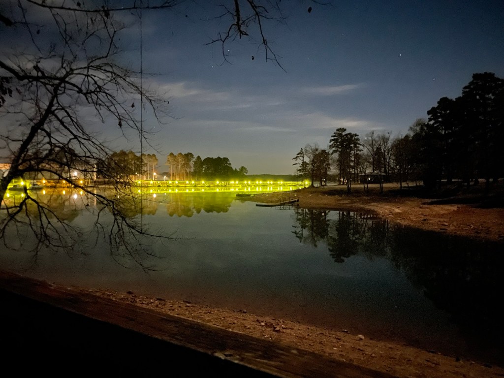 The most ongoing natural beauty, however, has been from our campsite. The sunrises and sunsets are beautiful on a nearly daily basis, but the lights from the boat shelters are my favorite sight as they cast their shimmering green reflections onto the water as dusk drops into night and dawn breaks into day.