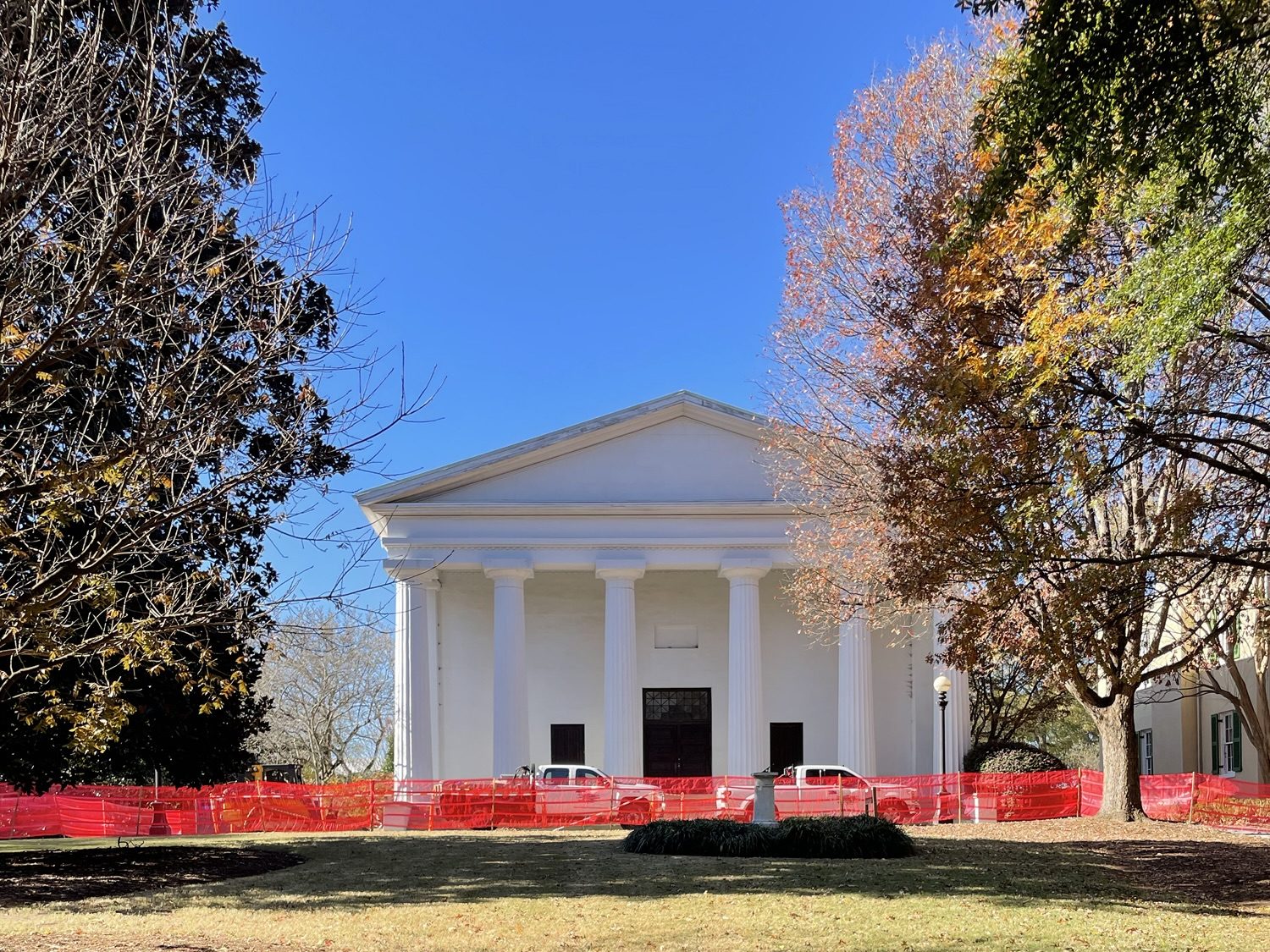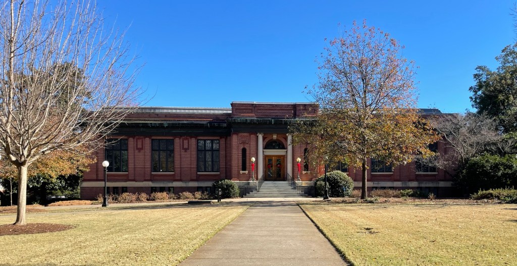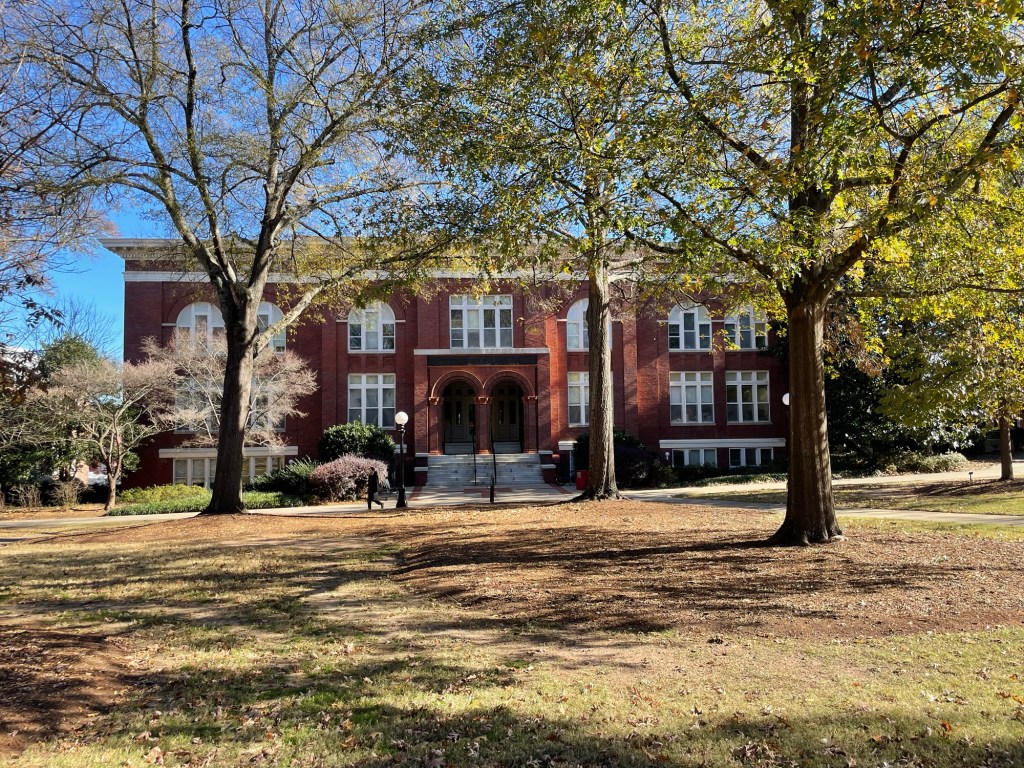 One of the first things we saw on campus was this great ‘pointer tree’. Do you see how two branches were trained at a very early stage into right angles? We learned from a very helpful docent at The Cherokee Museum of South Carolina that the Cherokee used to do this as a way-finding measure. Trails would have pointer trees to help them find their way through the forests on important routes. Now that we know to look for them, we see them more often than we would have expected to. The fact that this pointer tree stands there, in the main square of the oldest state-chartered land-grant school in the nation (1785), is a good reminder of a good many things.