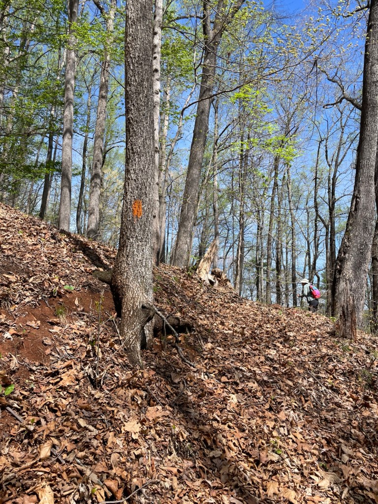 Sherry asked me if we had any trouble following the trails, knowing where they turned, etc. No, and I have to give the state park systems out here a lot of credit. They do a great job of sign-posting and color-coding. On the park’s paper maps, every trail has a name, color, and sometimes a shape assigned to it. Just follow that combo at the intersections and the colored blazes painted on the trees — and be prepared for some amazing views.
