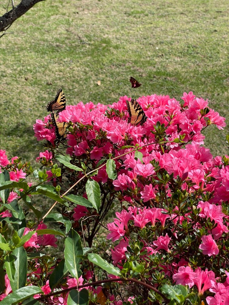 Jeff and I spent an inordinate amount of time watching butterflies and bumblebees at Fairy Stones, especially the ones sipping nectar from a blooming Azalea bush near the park office.